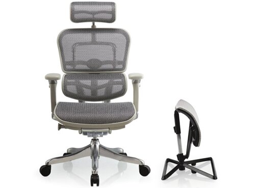 頭枕、椅背、椅座均采用優質進口網布;灰色塑膠框架,TPU扶手墊;頭枕插條、頭枕橫把手、背支撐架、扶手墊支撐座、扶手升降按鈕、扶手內管、底盤支撐架均為鋁合金精拋光;100MM氣壓棒,340MM鋁合金精拋光椅腳,65MM PU滑輪;